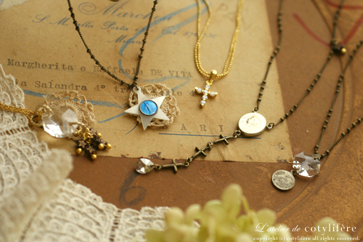pendant(スズラン、トライアングルゴールド、ブルーメダイ、クロス×アンティークレース、ゴールド2連マリアさまメダイetc.)